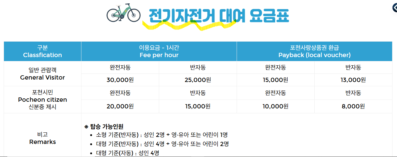 - 친환경 전기자전거 대여, 관람객을 위한 양산 무료 대여, 포천사랑상품권 환급 등