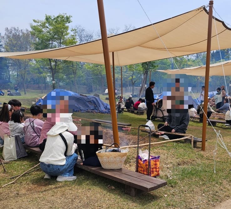 고글을 썼지만 눈이 맵고 뜨거워서 고기 굽기는 결국 어른들 차지가 되었습니다. 마시멜로와 소시지도 함께 구울 수 있었는데, 입장권 구매 시 받은 연천사랑상품권으로 구매할 수 있었어요. (단, 바베큐는 연천사랑상품권 사용 불가)