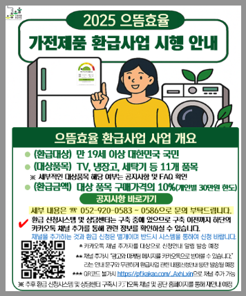 에너지 절약도 하고, 정부 환급금도 챙길 수 있는 기회, 2025년 1등급 가전제품을 구매하면 환급금을 주는 제도가 시행되고 있습니다. 하지만 “어떻게 신청하지?”, “내가 산 제품도 해당되나?” 고민되셨죠? 이 글에서는 으뜸효율가전 환급사업의 신청 조건부터 방법, 환급 대상 제품, 주의할 점까지 핵심만 쏙쏙 정리해드리겠습니다. 최대 30만원의 혜택을 받을 수 있는 제도이니 놓치지 말고 신청하시기 바랍니다.