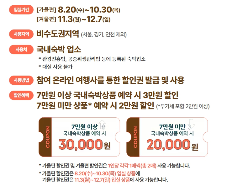 숙박쿠폰 3만원 할인받고 가을 여행!