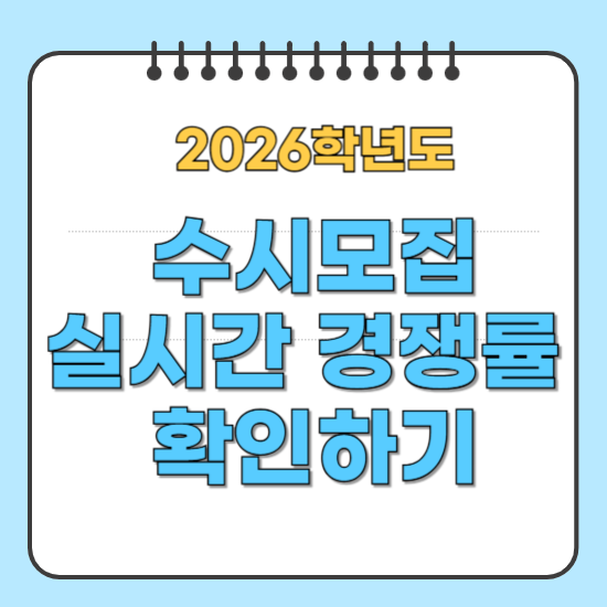 2026학년도 수시모집이 본격적으로 시작되었습니다. 아직 수시모집 지원을 하지 않은 분들도 계실텐데요. 수시모집 실시간 경쟁률 확인이 학교와 학과 선택의 유리한 선택에 도움을 줄 수 있습니다. 2026 수시모집 실시간 경쟁률 올바른 정보 확인 방법부터 데이터 해석까지, 수험생과 학부모가 꼭 알아야 할 모든 것을 정리했습니다.